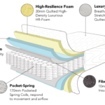 The construction of a pocket-spring mattress houses individual springs that are cushioned in their own pocket of material and filling. These springs are vertically positioned and distributed throughout the inside of the mattress, pushing against the sleeper’s body weight and fitting into their contours. Each spring will support your body on its own and won’t transfer it to another part of the bed, limiting disturbance from or to your partner.