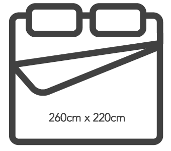 260×220 (for mattress sizes 5’x6′, Queen, 6’x6′, and King)